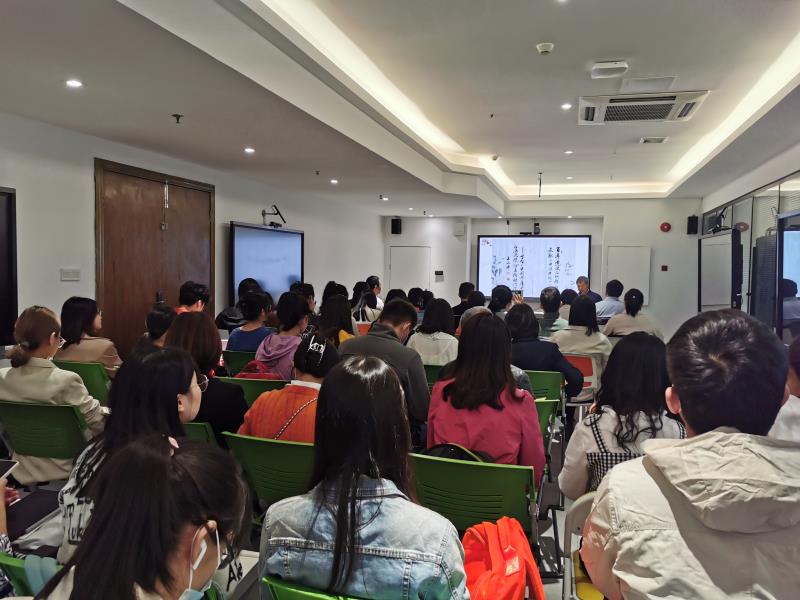 王永平研究员在讲述的过程中声情并茂,用自己的亲身经历结合中国共产党的发展历史,向大家讲述了中国共产党一百年峥嵘岁月里无数可歌可泣的故事。他指出,100年来中国发生沧桑巨变,换了人间。产生这一巨变的根本原因,在于有了中国共产党。他用幽默风趣的语言向大家精彩阐述了《中国共产党的历史使命与行动价值》的主要内容,深度解读了中国共产党是“全心全意为人民服务、为实现理想不懈奋斗、具有强大的领导力执政力、始终保持旺盛生机和活力、为人类和平与发展贡献力量”的执政党。王永平研究员还通过书法作品来作课件的形式为大家呈现了不一样的《中国共产党的历史使命与行动价值》,让大家在收获知识与智慧的同时,也感受到中国书法的魅力。
