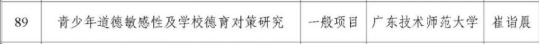 近期,2023年度教育部哲学社会科学研究后期资助项目评审结果公示,我院崔诣晨老师申报的《青年少道德敏感性及学校德育对策研究》获批一般项目,也是我校此次唯一立项项目。