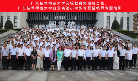 广东技术师范大学党委副书记、校长戴青云,江高镇教育指导中心主任黄晓波,广东技术师范大学各职能部门领导、广东技术师范大学实验教育集团成员校校长以及广东技术师范大学白云实验小学教育联盟全体教职工共270人参加本次培训。