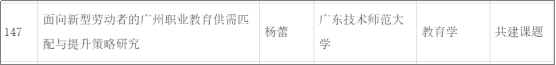 另,2024年度广州市社科规划常规课题(共建)拟立项名单公示,我院成功获批2项,分别是杨蕾老师申报的《面向新型劳动者的广州职业教育供需匹配与提升策略研究》、王孝金老师申报的《高职院校新质人才能力成熟度测评及提升策略研究》。