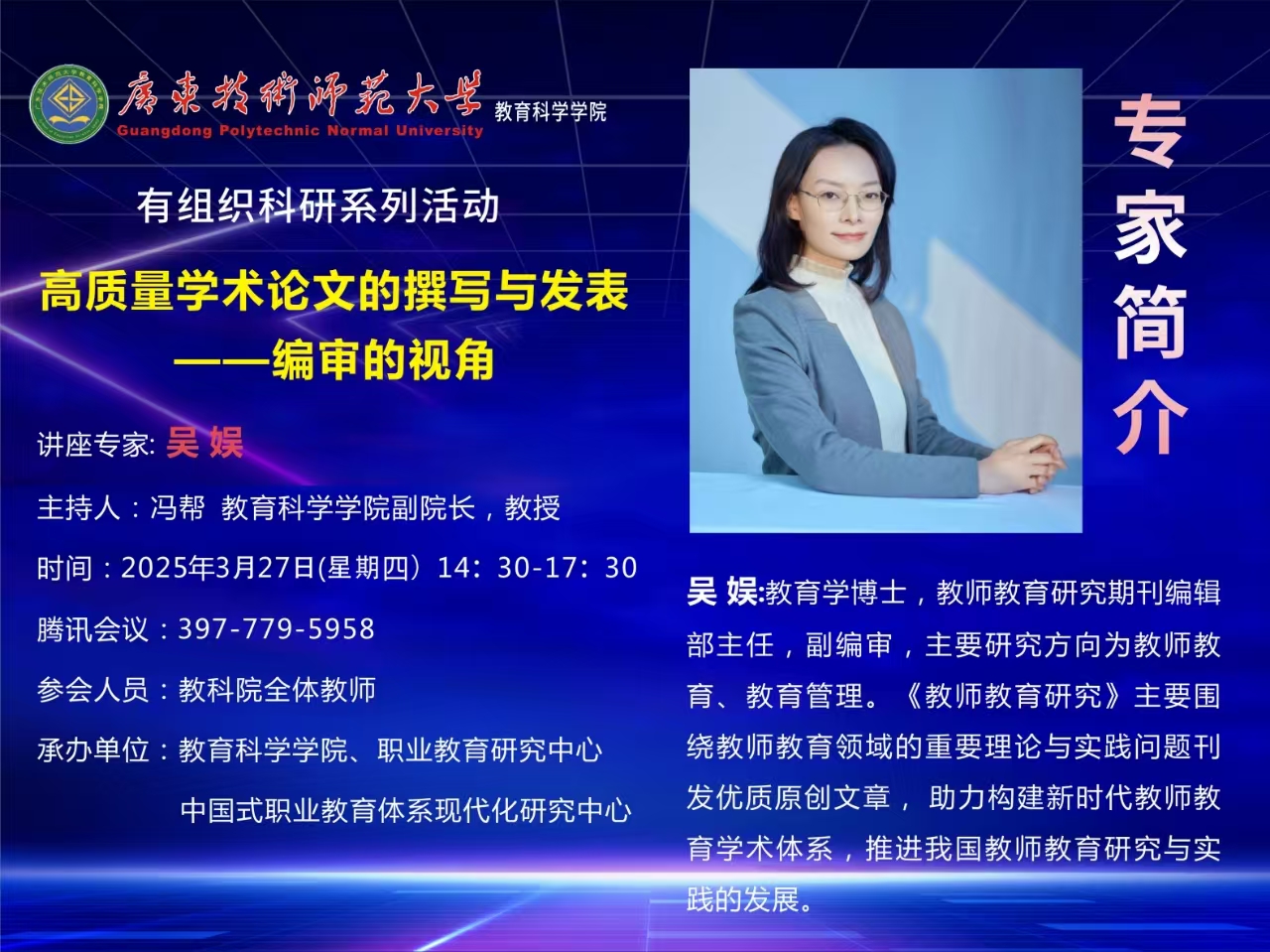 《高质量学术论文的撰写与发表——编审的视角》讲座预告