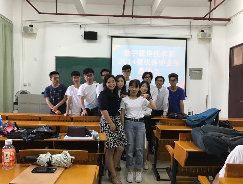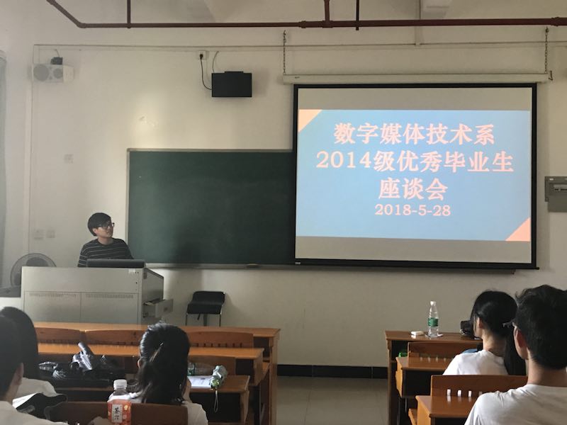 5月29日下午,在数字媒体技术系2014级优秀毕业论文答辩圆满结束后,随即举行了优秀毕业生座谈会。参会的十几位应届毕业生依次分享自己大学四年的心得及初入社会的体会,师弟师妹们也踊跃举手提问。
