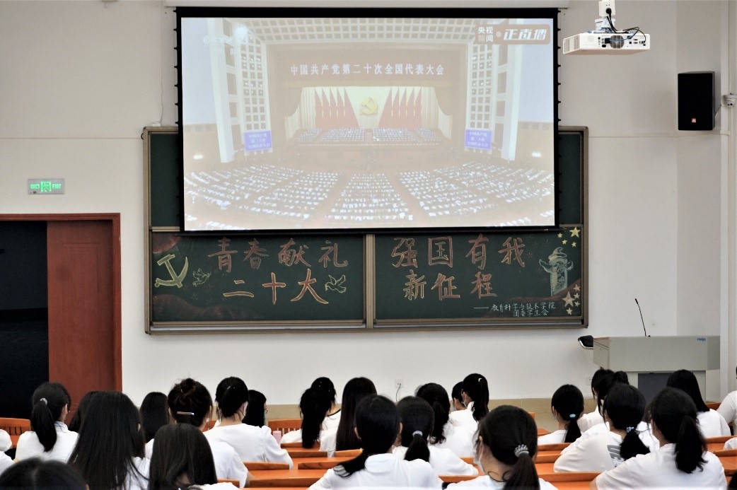 在全国人民的期待下,中国共产党第二十次全国代表大会开幕会于10月16日上午十点在北京成功开幕。我院团学干部与预干、各班团支书及22级入党积极分子分别在白云校区二教101、河源校区博学大讲堂102观看党的二十大实时直播。