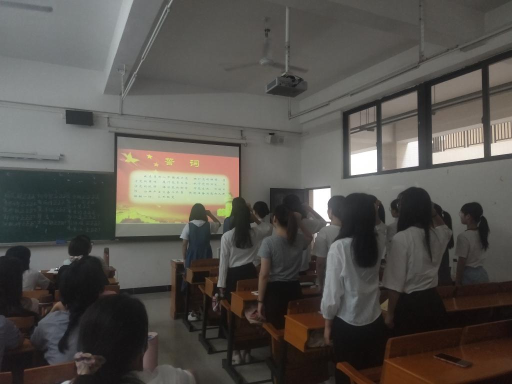 大会在雄壮的国歌声中拉开序幕,按照程序,发展对象汇报自己对党的认识、入党动机、思想认识、行为表现等,表达了对党的忠诚,表示将不忘初心,牢记使命,一心跟党走。接着,在场正式党员、预备党员对本次发展对象进行自由提问。随后,正式党员进行不记名差额纸质投票,各支部委员会成员计票、监票,现场唱票并公布结果。大会一致同意杨笑颖、李思婷等27名同志成为中共预备党员。最后,新预备党员进行入党宣誓。