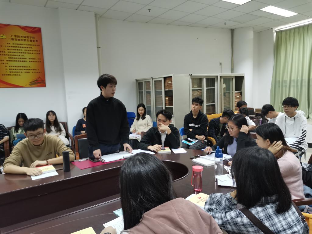 2019年12月15日,教育科学与技术学院本科生第一、二党支部在白云校区一教315会议室分别召开支部会议,会议讨论佘斯琦、潘凯莉等17位预备党员转正事宜。出席本次会议的有学院辅导员、支部书记吴晨阳老师,会议由吴晨阳老师主持,各支部副书记、组织委员、纪检委员协助会议的开展,学生党支部全体党员参加会议。