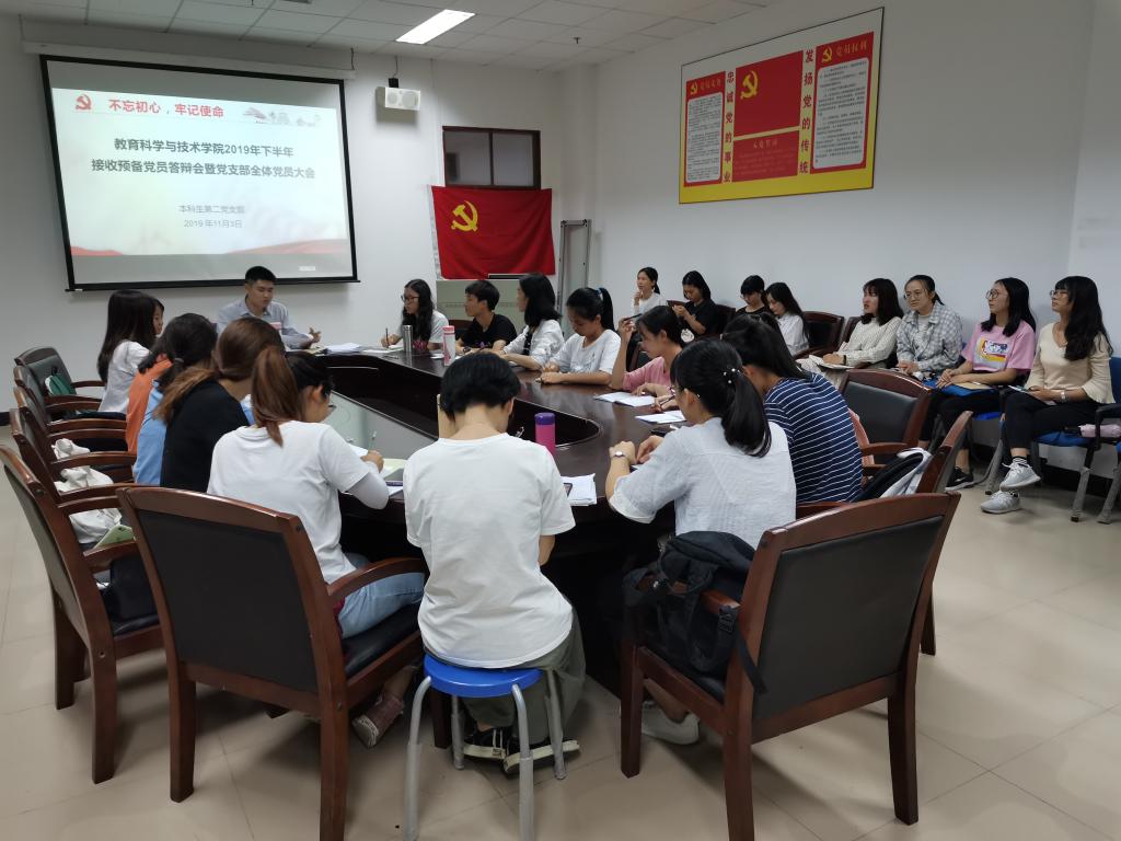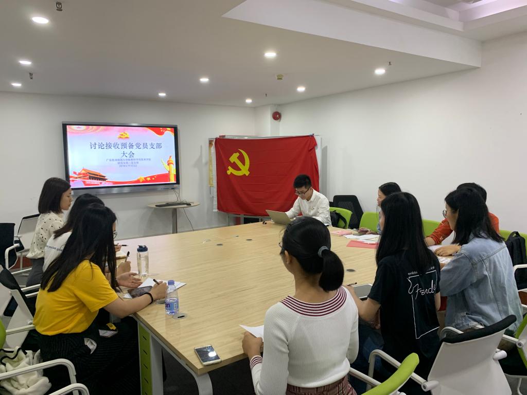为积极响应党的号召,培育选拔优秀党员,我院本科生第一、第二党支部和研究生第二、第三党支部于2019年11月3日下午分别在白云校区和东校区召开2019年下半年接收预备党员答辩会暨党支部全体党员大会,各支部书记老师分别列席会议,会议由各支部副书记主持,各学生党支部全体党员和发展对象参加了会议。