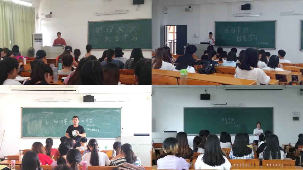 为帮助每一位本科生学习领悟新时代全国高等学校本科教育工作会议精神;激励本科生把更多的时间花在读书上;引导学生强化“立德修身、刻苦学习,堪当民族复兴大任的时代新人”的责任感和使命感,教育科学与技术学院16级各班于2018年9月18日-20日期间举办了以“回归常识、刻苦学习”为主题的主题班会。
