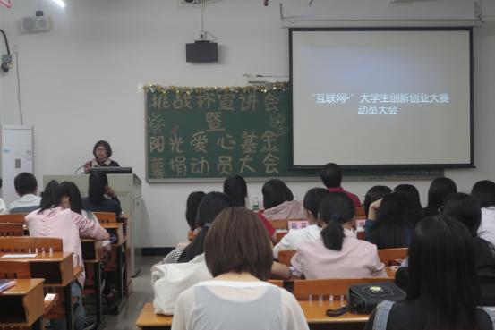 “挑战杯”宣讲会结束后就进入了第二项议程——阳光爱心基金募捐大会。首先,由主持人为我们讲述了阳光爱心基金会上学期的工作概况,并且向同学们展示了我们阳光爱心基金会是公平公正公开的,做到资金流向完全透明化,以便同学们监督。会议中介绍了申请爱心款的具体流程,同时,希望同学们加入基金会倡议的“一毛钱”捐助计划中来。接下来就是观看爱心视频的环节,通过观看爱心视频,同学们对阳光爱心基金会有了更深刻的了解。