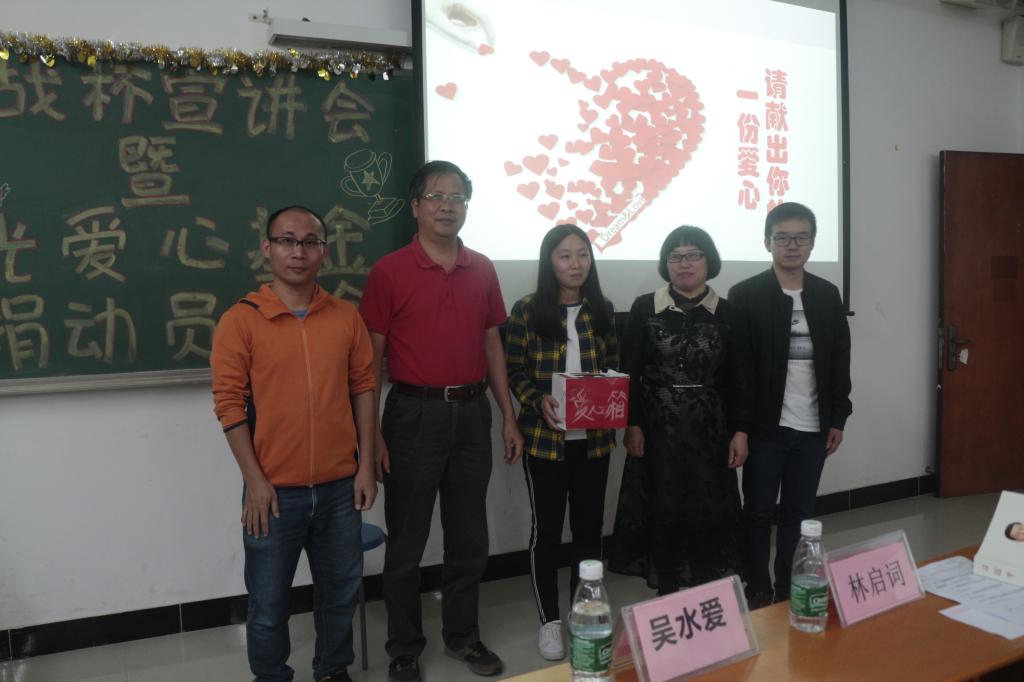 接下来林启词书记为阳光爱心基金募捐大会发表讲话,书记为我们讲述了阳光爱心基金会于我们整个学院是一个充满了正能量的部门,意义重大。不仅带头捐款还鼓励同学为阳光爱心基金会进行捐款。书记对在场的同学们提出了期望,希望同学们做一个有爱心、善良、懂得帮助他人的人。书记发完言就到了本次活动的高潮进行代表募捐仪式,在工作人员的指引下,各位领导老师和同学们纷纷献出自己的爱心,这一环节体现了领导老师以及同学们对阳光爱心基金会的的肯定与支持。