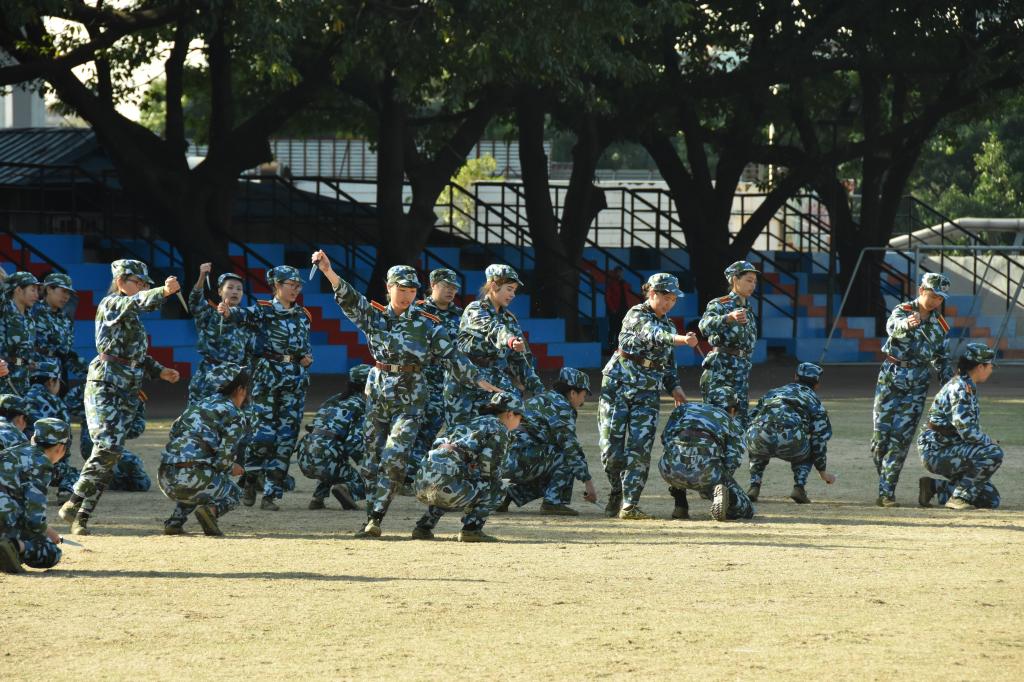 清扬的校歌在操场中回荡,伴随着护旗手整齐的正步,军训表彰总结大会也正式开始了。雄壮的国歌过后,便是走方阵环节。虽然我校今年缩招,方阵也较往年少了许多,但是学生们的风采却一点也不逊色,而我院学生也个个昂首挺胸,整齐嘹亮的口号掷地有声,格外振奋人心。在接下来的汇演中,我院学生的匕首操更是令人耳目一新——一把把亮蹭蹭的短匕首、一声声冲破天际的“杀!”、一组组铿锵有力的动作,无不展示出我院学生飒爽英姿。汇演结束后,全体学生献上手语操——《国家》,受训学生们用其坚定的神态,不断变换的手势,表达着他们对于国家那深深的感情。大会最后,进行的是表彰环节,我院学生经过努力,为我院获得表演方阵集体奖、优秀内务卫生奖这两项集体奖项。