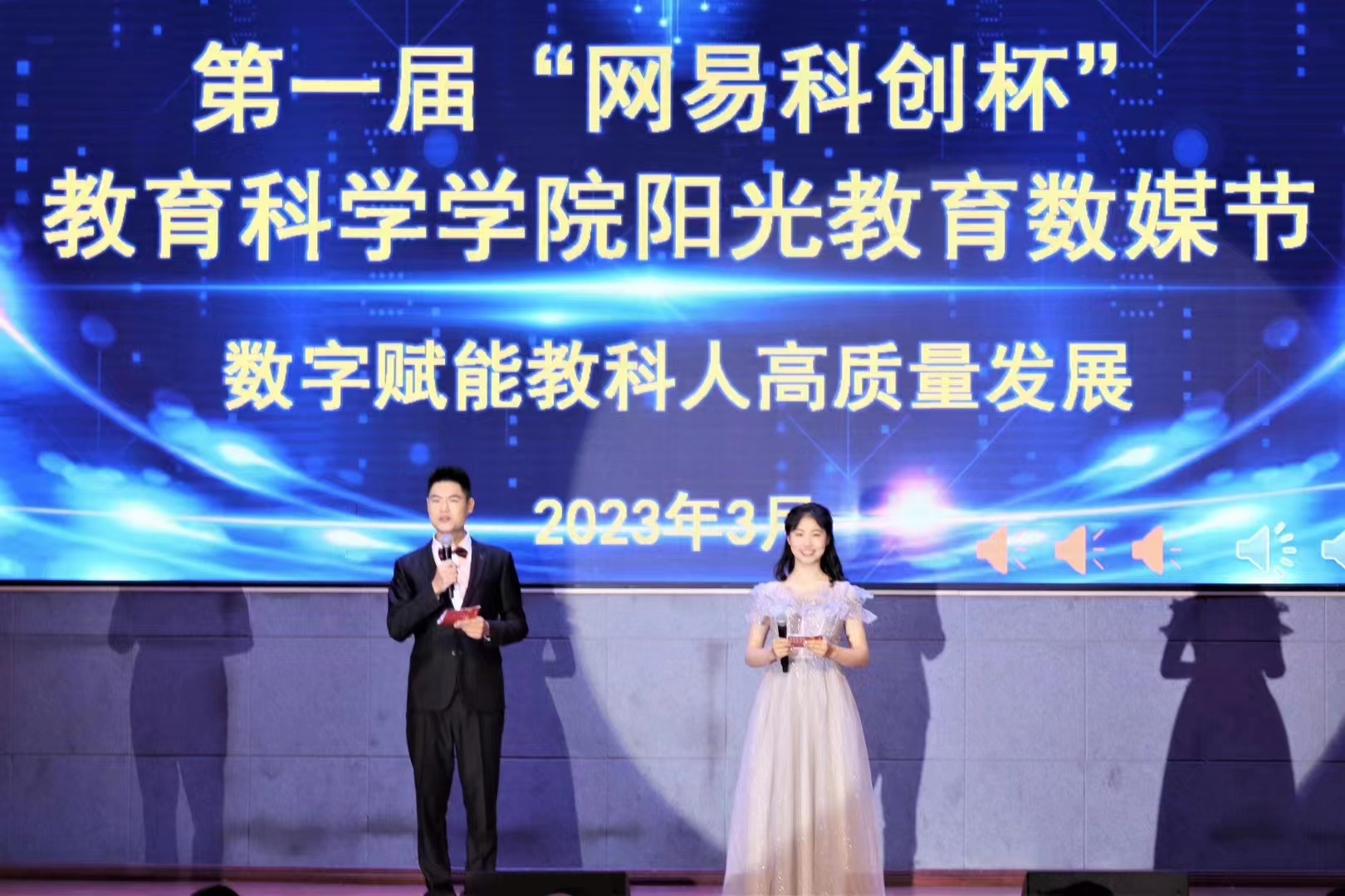 在全校上下深入学习贯彻党的二十大精神,落实广东省高质量发展大会精神,加快推进学校高质量发展之际,金年会3月19日晚上,以“数字赋能教科人高质量发展”为主题的“第一届网易科创杯”阳光教育数媒节在白云校区学生活动中心开幕。