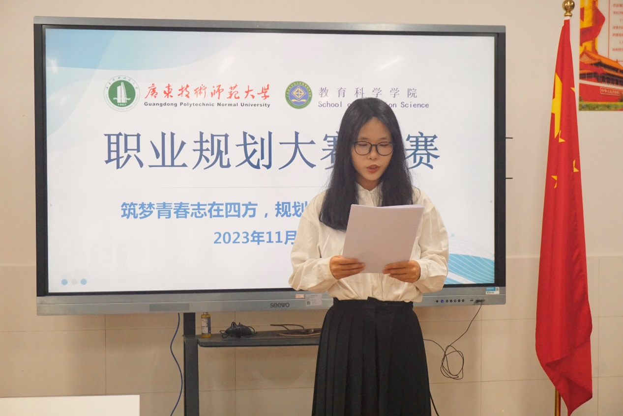 在主持人的引入后,每位选手结合生涯发展报告进行陈述并展示,每位选手展示完毕后,评委老师们经结合选手陈述和现场表现进行提问。吞故纳新,方能笃行致远;追求精进,拥抱进取之心。来自不同年级、更专业的参赛选手,都根据自身专业特色与个人成长发展经历及自身性格角色特点进行全面剖析,深入浅出地阐释自己的未来职业规划方向。参赛选手们生动细化的职业规划课件、精炼地提取自身职业规划的各个重点,将自身未来学习重点细化为各个阶段的小目标。此外,选手们还积极根据现实情况进行反馈修正,为未来的道路发展做好了备选方案。参赛选手们清晰的逻辑思维与精彩的展示,将激情融入自身发展事业的表现,让在场的评委观众们看到了一位位有志气、有目标、有方向的教科学子。