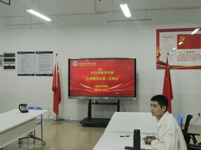 20231121日下午,金年会心理辅导站全体成员在白云校区二训502开展了本学期第二次例会。会议由心理专项负责人、辅导员吴晨阳老师主持,心理辅导站全体成员参加了此次会议。