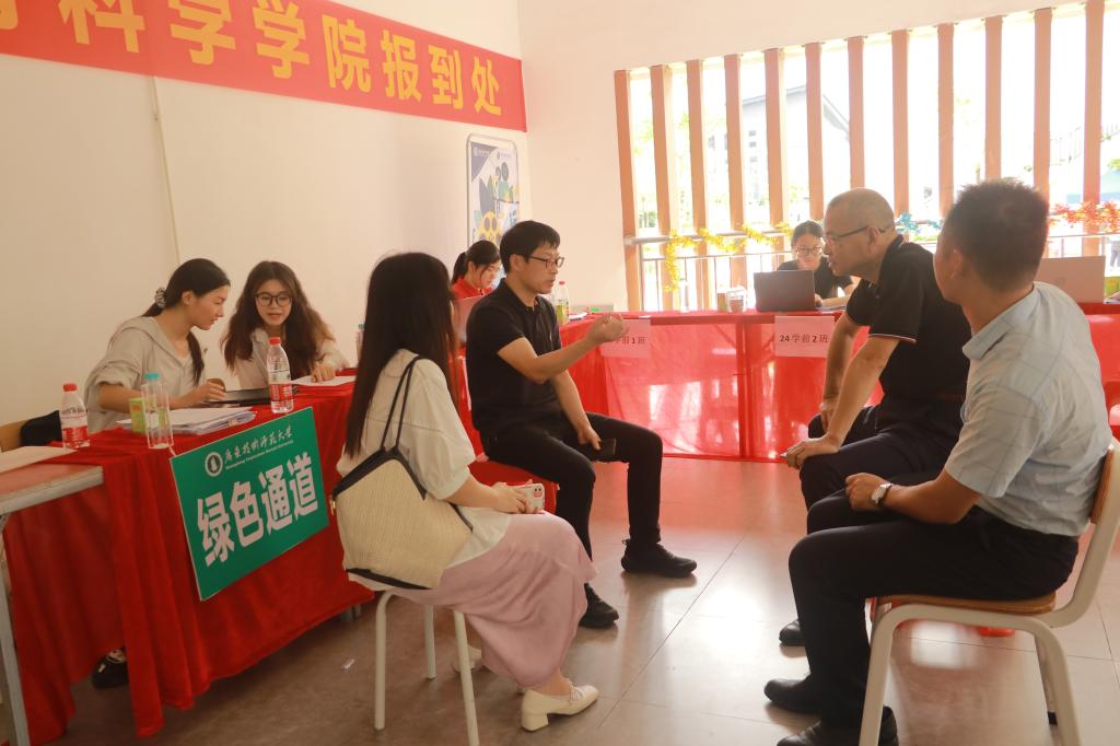 9月7日上午约12时,金年会党委书记张旭日、院长熊华军、党委副书记吴水爱、副院长谢德新等领导及辅导员吴晨阳、黄立老师亲临现场,共同助力迎新工作的顺利进行。随后,学院领导与教师团队深入新生宿舍,与初来乍到的新生及其家长进行了一场场温馨的交流,不仅关切询问新生的初体验,更耐心解答疑惑,传递着学院大家庭的温暖与力量。