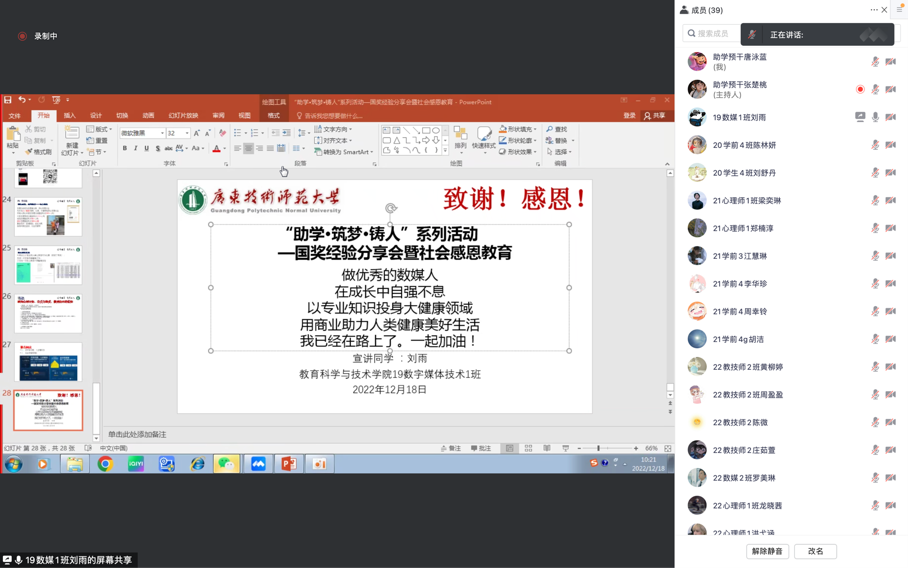 为了让同学们更好地了解国家奖学金及相关政策,我院勤工助学服务中心于2022年12月18日上午9:30举办了“助学·筑梦·铸人活动之国奖经验分享会暨社会感恩教育”的线上会议。