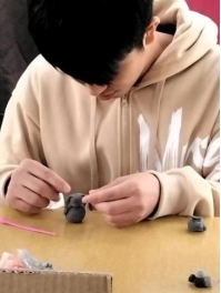 游戏规则:①游戏者选择一块彩色黏土,根据自己对军训的情绪通过想象,用黏土将它捏出形状来;②若黏土形状为积极的,则游戏者分享一下原因;若为消极的,则游戏者可采用自己的方式重塑(锤爆或者拍扁都可以)