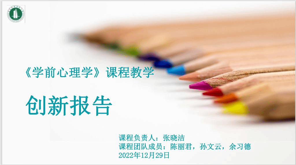 张晓洁团队的《学前心理学》课程是面向学前教育专业师范生的必修课,主要培养学生初步掌握学前儿童心理发展特点及规律,并自觉运用学前心理学知识解决幼教实践中相关问题,激发学生对幼教事业的热爱情感,履行教师职业道德规范,践行社会主义核心价值观,树立为中华民族的伟大复兴而奋斗的信念。团队构筑教研科研融合发展的教学目标,深化“两性一度”的项目化教学方案,形成了“二线三段七步”的课程教学模式,实现课程内容与课程思政同向同行。教学团队成员相互配合、资源共享优势明显。“教-学-研-评”一体化课程模式也受师生的一致肯定,教学评价在学院排名位于前10%。教学团队通过创新教学竞赛与教学改革项目,强化了师生课堂互动与学生独立思考、独立研究的能力,提升了教学水平,推动了专业升级,也为学前教育专业课程体系建设与教学方式方法改革明确了思路和方向。