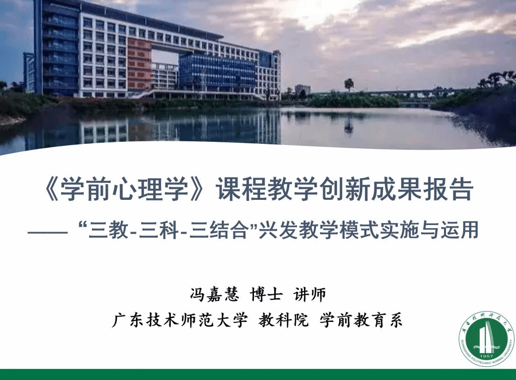 冯嘉慧老师以《学前心理学》课程教学创新为例撰写了课程思政创新报告与教学设计创新报告。针对学生专业学习内驱力不足、自主学习意识不强、教师教学创新与改革意识不强等痛点问题进行思考,并提出了“三教-三科-三结合”兴发教学模式,以“教师、教材、教学的改革”赋能优质课堂,以“科教、科研和科创融合教学”深化课程思政目标,以“线上线下教学相结合、教学科研相结合,形成性评价与终结性评价相结合”的实践模式优化全方位育人,充分激发了学生学习内驱力,实现有效教学。