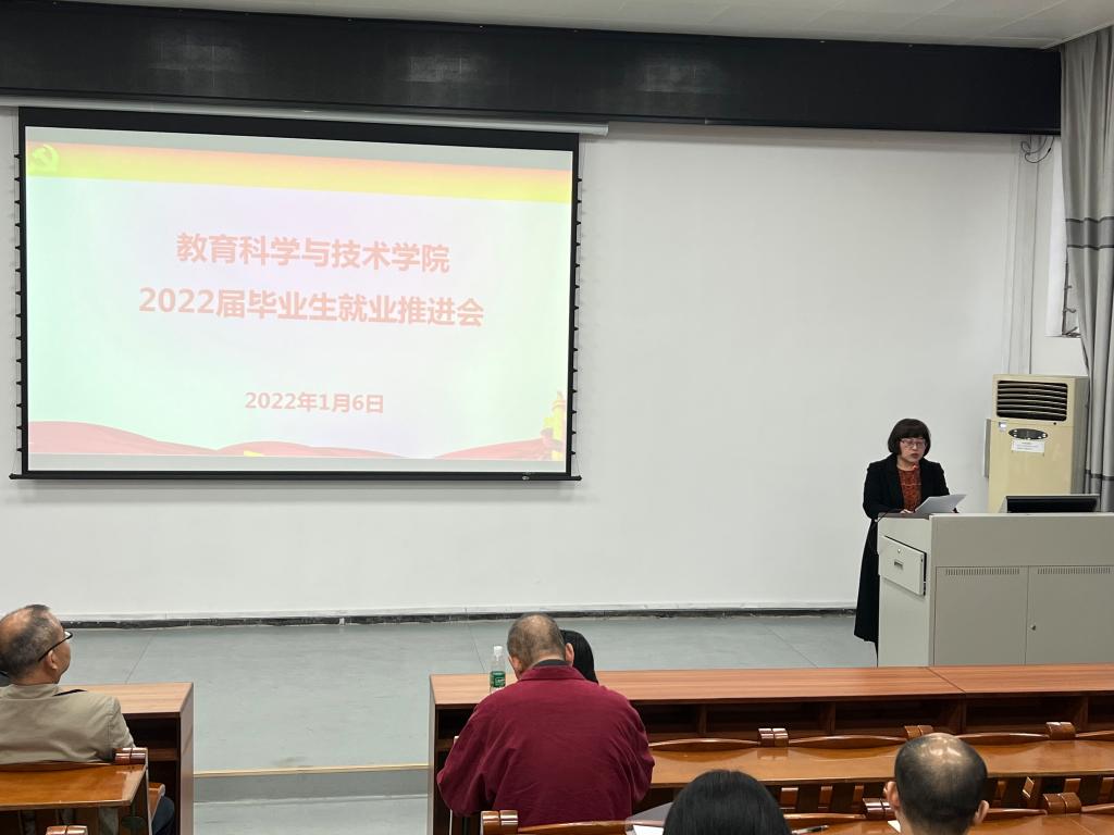 1月6日,教育科学与技术学院在东校区实验楼107课室召开2022届毕业生就业工作推进会,学院党政领导、各专业系主任,毕业班班主任、全体辅导员及专业老师参加了会议,会议由学院