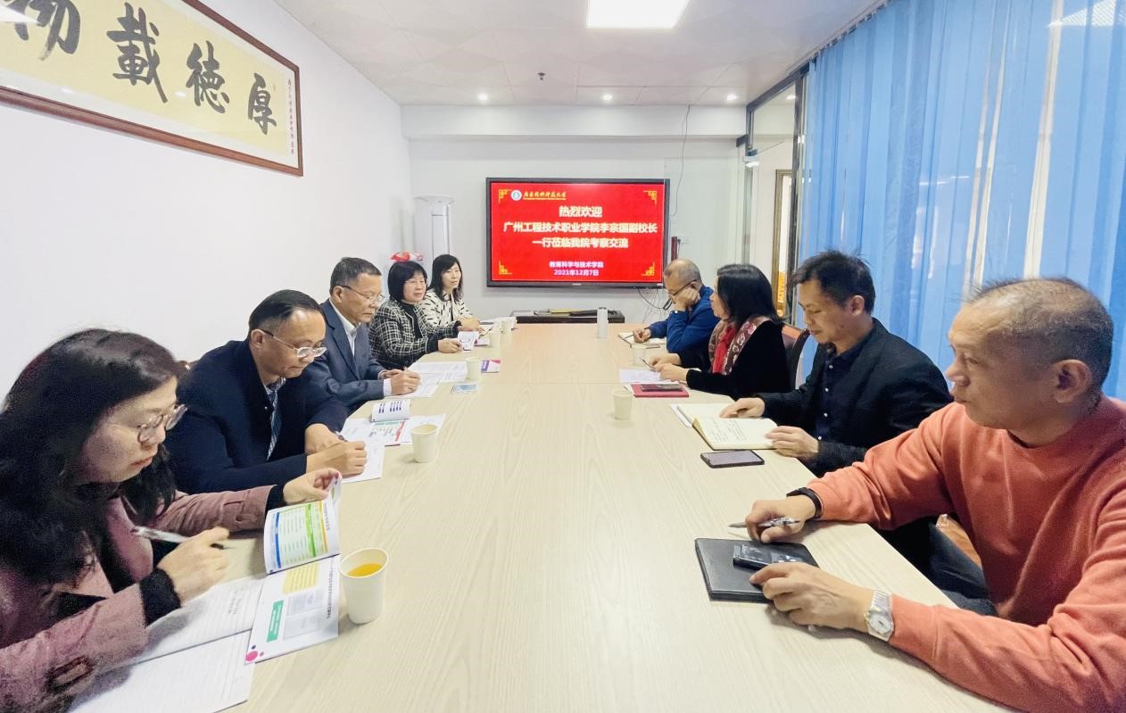 2021年12月7日上午,广州工程技术职业学院李宗国副校长、教务处兰先芳副处长、李红丽副处长、信息工程学院王世安院长、吴明珠副院长等一行五人,到教育科学与技术学院进行调研交流。学院党委张旭日书记、陶红院长、谢德新副院长、党政办常锋峰主任参加此次座谈会。