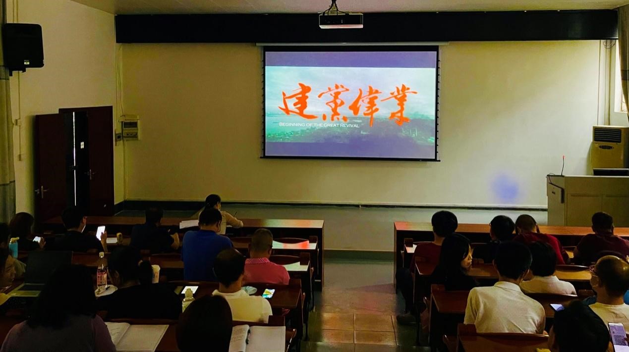 党课最后还全体教职工集体观看了党史影片《建党伟业》。该片从1911年辛亥革命爆发开始一直叙述至1921年中国共产党第一次全国代表大会召开为止共10年间中国所发生的一系列重大历史事件.