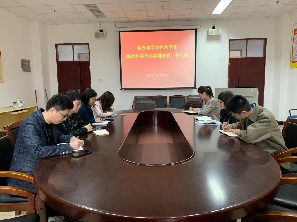 2021年3月10日上午,教育科学与技术学院在白云校区一教315会议室召开新学期辅导员工作部署会。会议由学院党委副书记吴水爱主持,全体专兼职辅导员参加会议。