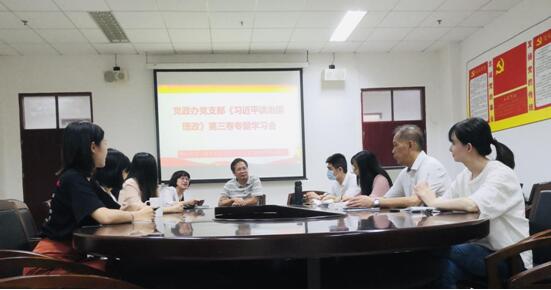 9月29日上午,教科院党委书记林启词,党委副书记吴水爱和党政办党支部全体党员围桌而作,在党政办党支部书记常锋峰的领读下,认真学习领会《习近平谈治国理政》第三卷的内容。大家认真学习、仔细记录,读原著、学原文、悟原理。