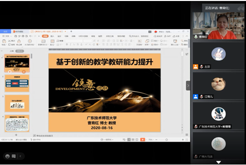 教育科学与技术学院曹育红教授以“基于创新的教学教研能力提升”为主题,围绕“创新”与“基于创新的相关能力”两部分进行阐述。通过对“创新”相关概念进行深入解读,展现出创新的重要性与人人皆可创新的可行性,并从“学习能力”“教学能力”“课程研发能力”三方面,全面系统地论述教师应具备的创新能力。