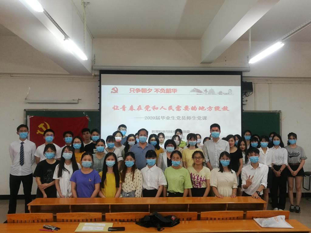 在2020届毕业生即将告别母校之际,为进一步增强毕业生党员的母校荣誉感和社会责任感,加强对毕业生党员的教育与培养,引导毕业生党员保持先进性,6月23日下午,教育科学与技术学院党委在三教201教室组织开展以“只争朝夕,不负韶华”为主题的2020届毕业生党员教育会议。学院党委书记林启词、党委副书记吴水爱、研究生第三党支部书记张晓颖老师以及全体毕业生党员出席会议,会议由学院专职组织员吴晨阳老师主持。