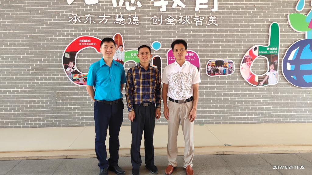 2019年10月24日,谢德新副院长带队、黄茂勇博士同行赴白云区沁德文化幼儿园共建实习基地事宜,考察园舍环境及其办园实际情况。林培淼园长详细介绍了沁德文化幼儿园的总体办学情况,并表达与我校共建教育实习基地的意愿;谢副院长对幼儿园接待我院2017级学前教育专业学生教育见习表示感谢,并介绍了我校建设教育实习基地的标准和详细要求,表示双方要以共建实习基地为契机继续深化合作。