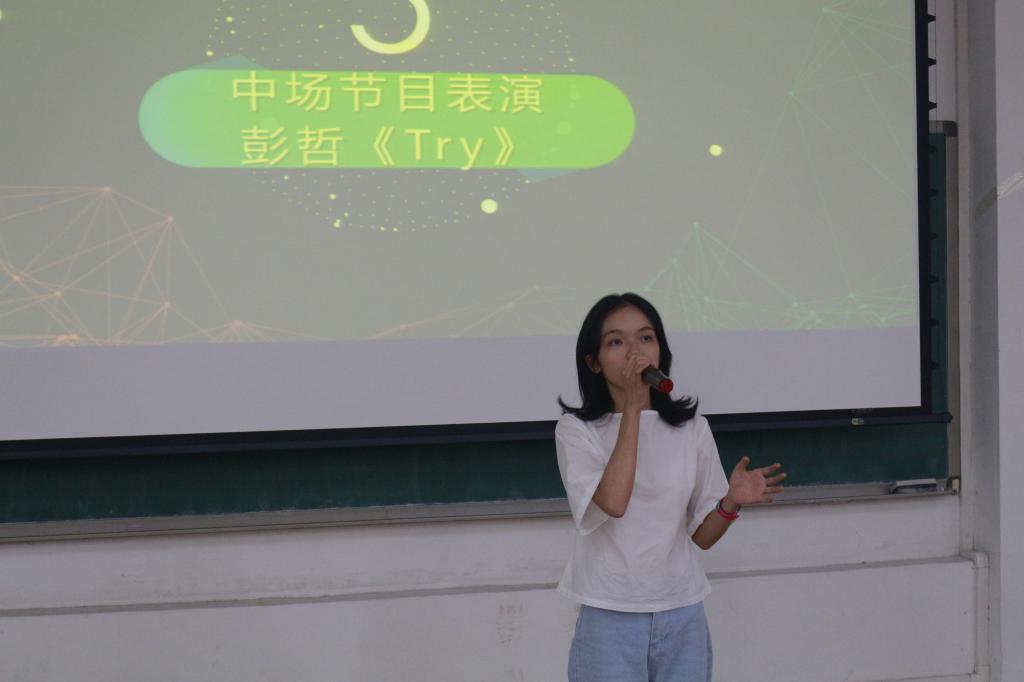 对于这次比赛,全体人员都是既紧张又期待。中场休息时间歌手队彭哲带来歌曲《Try》,美妙的歌声舒缓了大家紧张的心情。