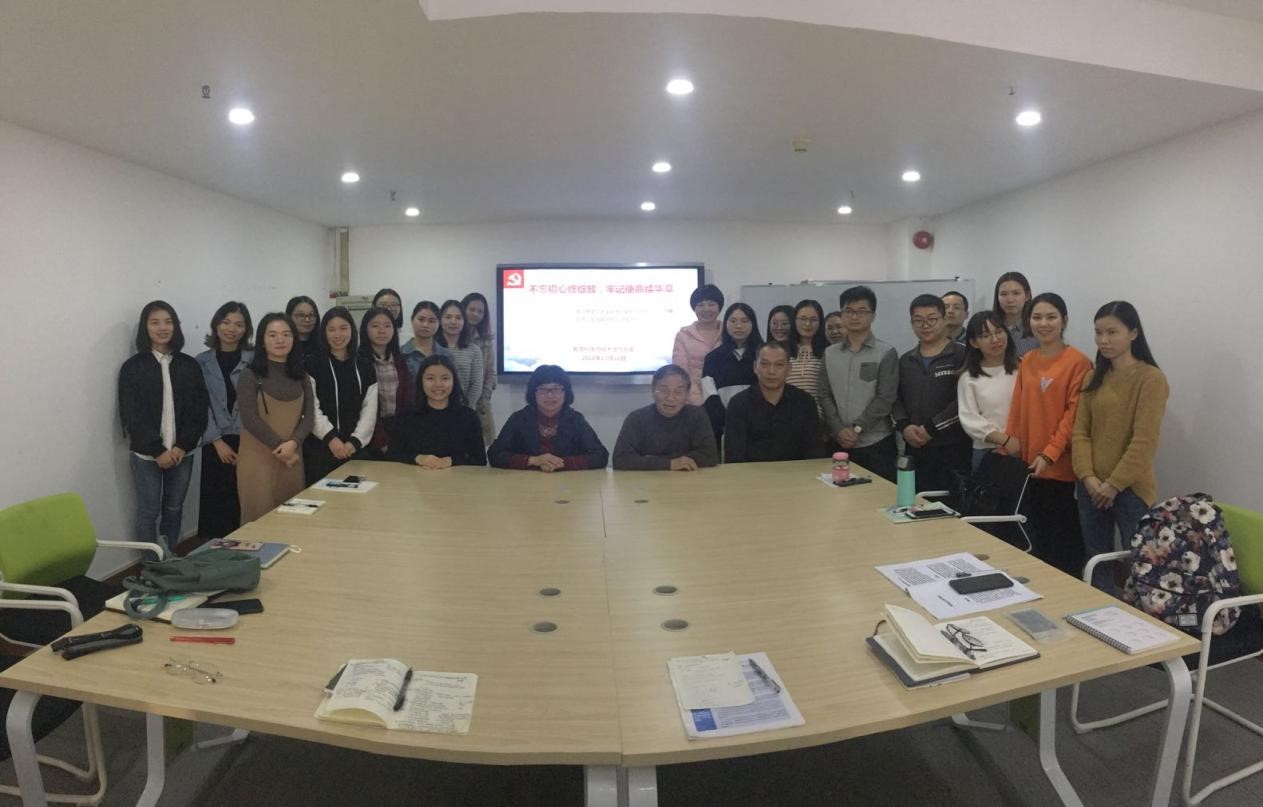 为深入学习贯彻习近平总书记视察广东重要讲话精神和党的十九大报告, 12月26日教科院党委副书记吴水爱为18级全体研究生作了“不忘初心终绽放,牢记使命续华章”的专题讲座。出席此次报告会的有教科院办公室主任常锋峰老师,辅导员梁爽老师和18级全体研究生。