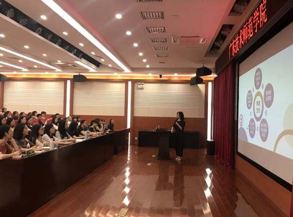 罗园长首先为学生们介绍了美的实验幼儿园,紧接着罗院长为同学们讲解了国家关于幼儿教师的相关政策;在此基础上,罗园长重点阐述了师德为先、幼儿为本、能力为重、终身学习四个基本理念,叮嘱同学们未来要做一名热爱幼教事业的教师。