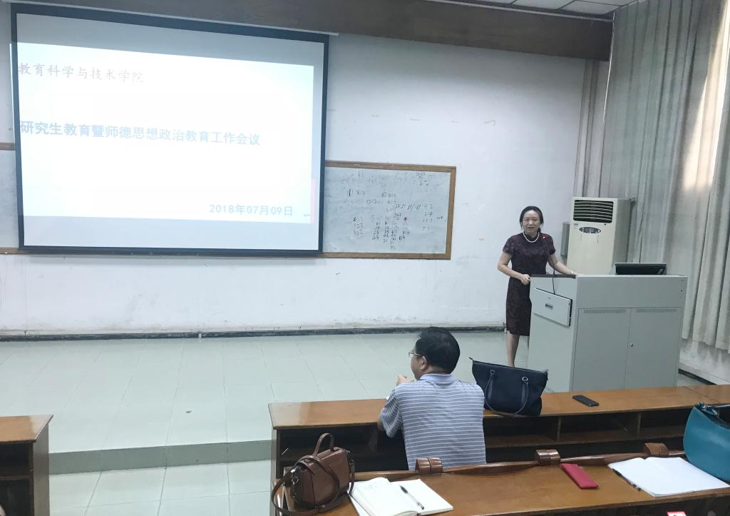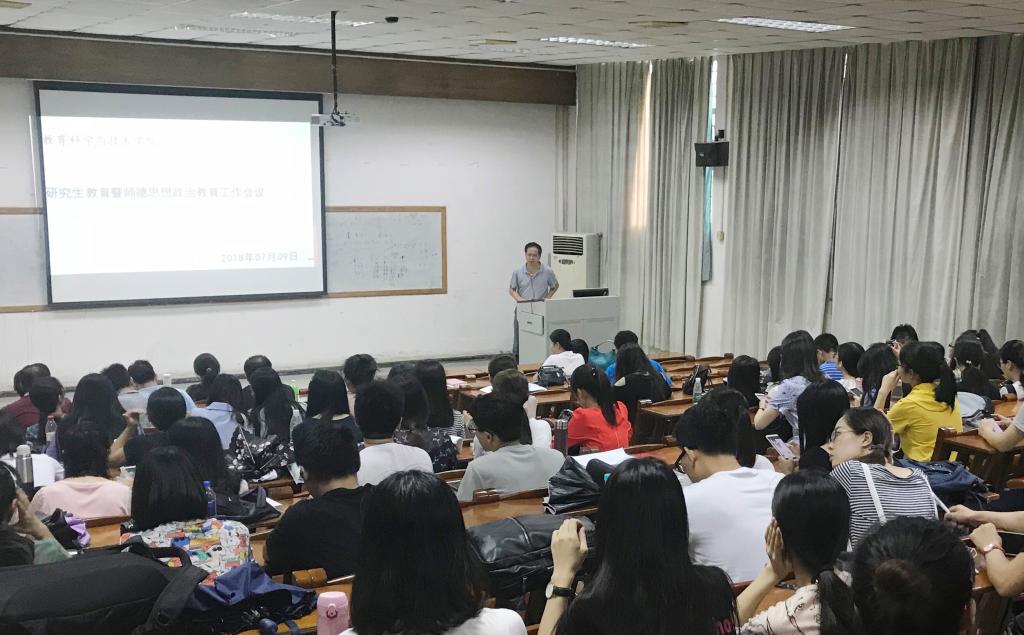 7月9日下午,教科院在实验楼107召开研究生工作暨导师师德教育、思想政治工作教育大会,学院党委书记林启词、院长陶红教授、副院长陈丽君教授、副院长任平教授,以及研究生导师和研究生参加会议,会议由陈丽君副院长主持。