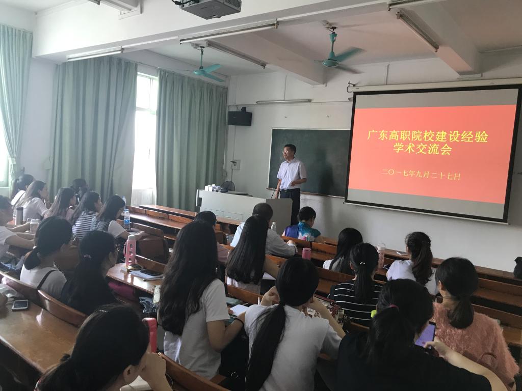9月27日上午在一教806广州科技贸易职业学院院长蒋新革教授、广东工程技术学院示范办主任王涛涛副教授应邀与2017级全日制研究生进行广东高职院校建设经验学术交流。教科院陶红院长、陈丽君副院长及2017全体全日制研究生参加了此次交流会活动。