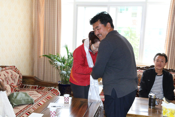 接下来,西洛校长对广技师援藏支教师生表示了热烈的欢迎,同时提出了三点要求。第一点要求:搞好团结。林芝职业技术学校的教师和援藏师生来自五湖四海,大家要多沟通,多交流。第二点要求:尽快进入角色。广技师援藏的同学是本科四年级的学生,来到林芝职业技术学校工作性质和环境都发生了变化,西洛校长希望同学们完成身份的转换,尽快适应教书育人的工作岗位,为学生传道受业解惑。西洛校长同时提到西藏由于历史、环境的原因,学生的基础条件受到了一些限制,支教的师生要重视、爱护、关心学生,不仅要将先进的技能传授给学生,还要从的德育上教会学生维护祖国统一,培养学生们的爱国主义精神。第三点要求:有克服困难,爱岗敬业的精神。西洛校长回顾了学校的发展历史,战胜困难发展的历程,希望同学们困难放在一边,工作在前,爱岗敬业,为西藏赶上国家和时代发展做贡献。西洛校长还代表林芝职业技术学校为广技师援藏师生敬献哈达,表达了学校对大家的期望和爱护。