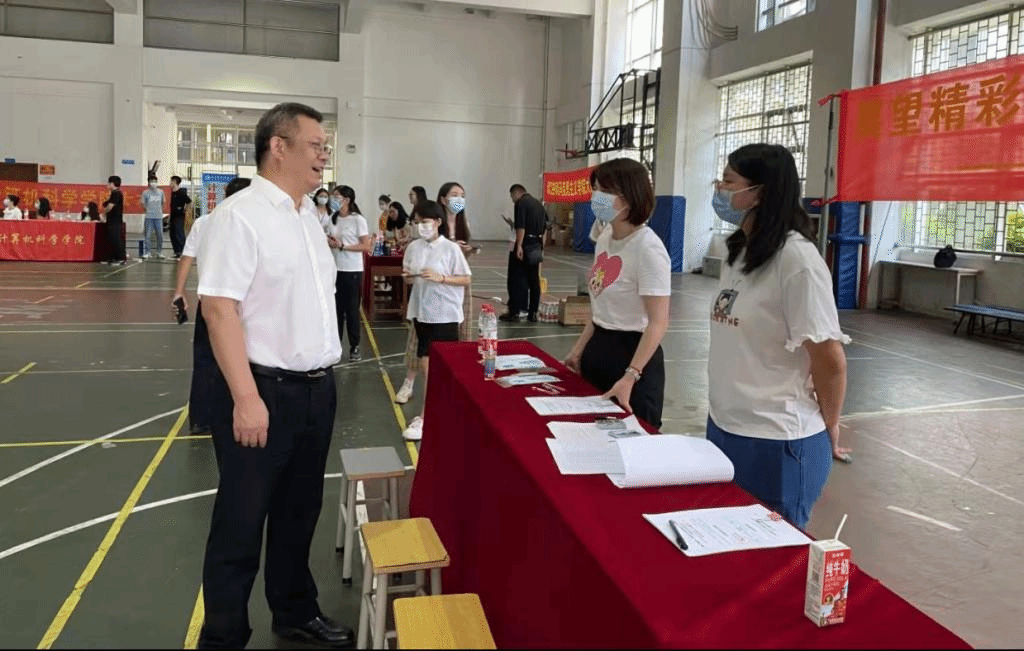 广东技术师范大学凌靖波书记、骆少明校长及研究生院相关领导一行亲临迎新现场,指导迎新工作,与新生亲切交流,对我院迎新准备工作给予了肯定。凌靖波书记表示对我院寄予了厚望,他特别指出我院的发展关乎学校的职业发展,要求我院迎难而上,把工作做到极致,把教育做到卓越,把职业做到专业。鼓励我院肩负时代使命,振兴职业教育,培养优秀工匠,塑造匠人精神,树立匠人典范。