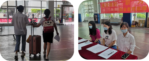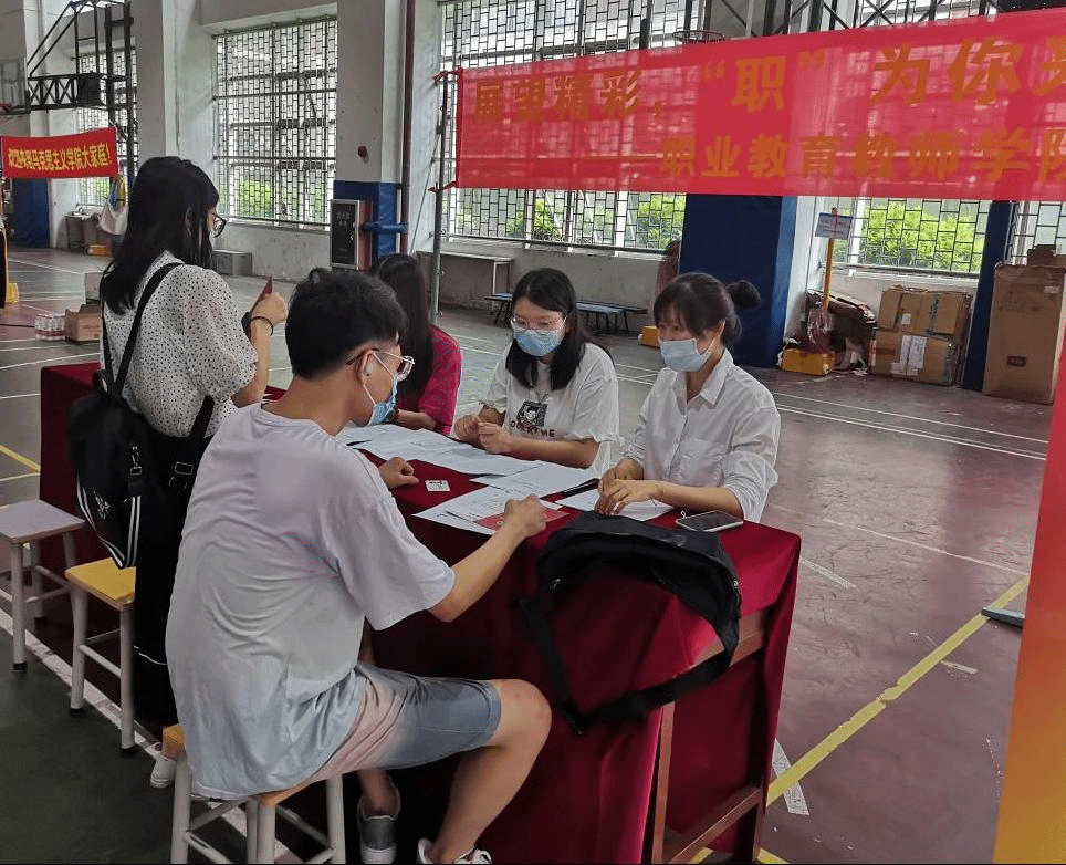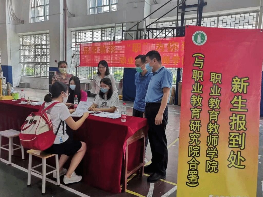 9月2日上午,在综合馆一楼近入口处,“展望精彩,‘职’为你来的横幅飘扬在报到处上方,职业教育教师学院负责研究生工作的老师和2020级迎新志愿者们愉快地等候在报到处,等待着24位怀揣梦想,远道而来的研究生新生。