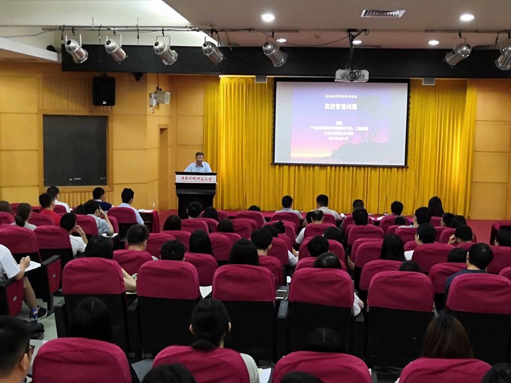 2019年6月1日,广东技术师范大学2019年第二期(总第三期)广东省高校新入职教师岗前培训班开班仪式在我校顺利举行。我校副校级领导、职业教育研究院院长黄崴教授,职教研究院负责老师与来自广东机电职业技术学院、广东水利电力职业技术学院、广州民航职业技术学院等十三所高校的一百多名参训教师参加了此次开班仪式,黄崴教授主持。