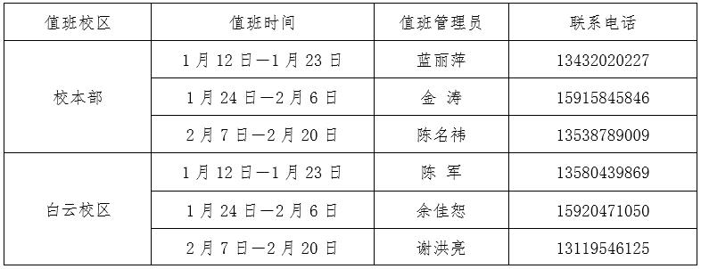 教育科学与技术学院2020寒假值班表