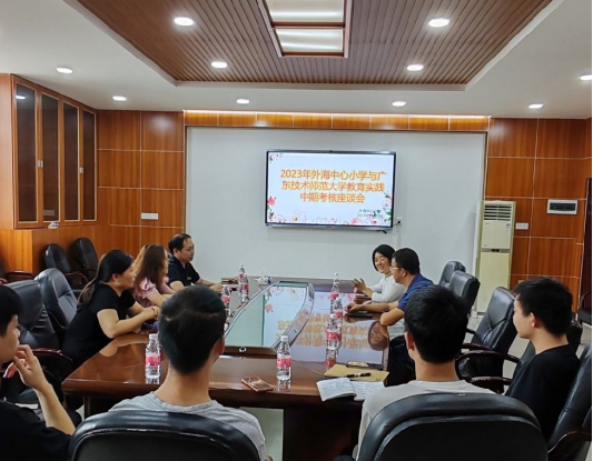 2023年11月3日上午,教育技术学系主任赵玉教授、黄芳明老师等赴江门市江海区外海街道中心小学开展实习中期检查,外海中心小学杜成明副校长、肖巧玲助理、劳运霞老师、杨琴老师及我校4位实习生出席了在该校举行的教育实习中期考核座谈会。