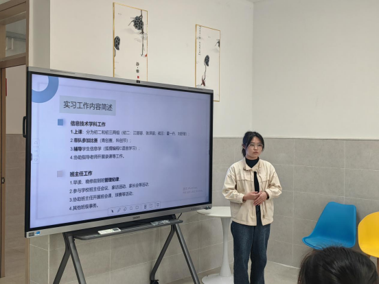欧阳小颖校长首先致欢迎词,她代表学校向广东技术师范大学的指导教师表示热烈的欢迎。实习生代表江丽容发言。她首先代表所有实习生表达了对建安中学的感谢,然后从教学工作、班主任工作、竞赛辅导、专业技能学习方面,总结了两个月以来的所学所得。建安中学信息科长、实习指导教师张丹颖发表了讲话。她对实习生的表现非常满意,希望实习生们能够珍惜这次机会,努力学习。
