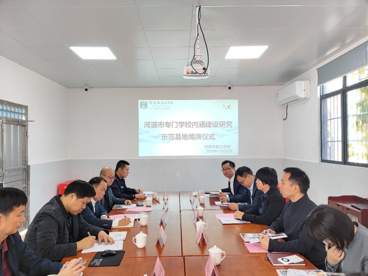 为深入贯彻习近平总书记关于教育重要论述,提升河源市专门教育、专门矫治教育水平,推进专门教育学校建设和发展,11月22日金年会副院长冯帮、河源校区管委会副主任张宇鹏、副主任李冲、金年会辅导员黄立一行,赴河源市启正学校举行专门学校内涵建设研究示范基地揭牌仪式。河源市教育局副局长黄汝荐、源城区工商联党组书记李晨蕾及相关领导出席并见证仪式,启正学校校长谢永刚主持会议。