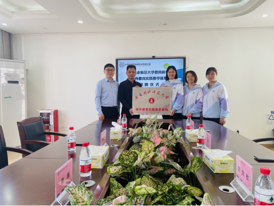座谈会上,谢德新副院长表示教育实习是同学们一个很好的职前与职后的过渡,希望同学们能够有所收获和成长。并表示希望能从人才培养层面上进一步加深高校、政府、教师发展中心三方的交流与合作。南沙区教育局副局长黄汐对我校选择与南沙的幼儿园合作培养优秀学前教育人才表示感谢,并由衷希望大学与幼儿园紧密联系,在教研领域探索深度合作,搭建联合教研共同体,办好人民满意的学前教育。并表示南沙地处粤港澳大湾区中心,有着广阔的发展空间,欢迎同学们过来就业。南沙区教育研究院教研员朱心黎也表示希望能与我校共建研究生联合培养基地,共同赋能学前教育事业高质量发展。在场的实习生们也纷纷发言表示在四个月的实习中受益良多、学有所获。最后,在双方与与会人员的见证下进行了共建实习基地揭牌。