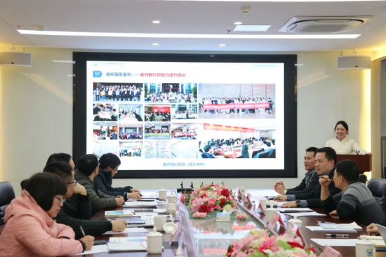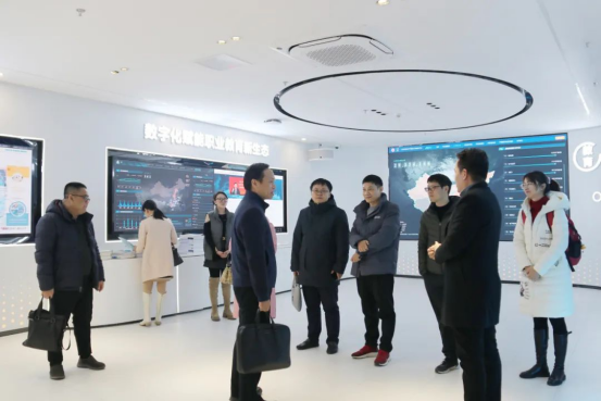 1月23日,广东技术师范大学副校长邓文新带领教科院老师一行赴职教桥参观交流,在蔡宗山副总的陪同下,参观了职教桥的产教融合数字化赋能中心,了解数字产品生态、教研服务体系、以及成果案例等,并围绕“产教融合、数字化、大数据、产教对接谱系、访企拓岗”等议题展开座谈交流。