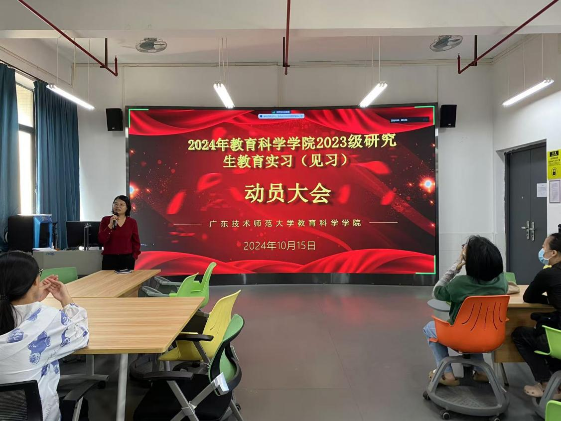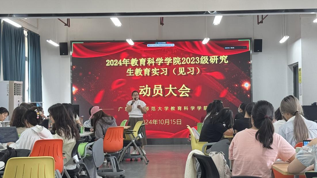 2024年10月15日上午,金年会2023级教育实习(见习)动员大会在白云校区二训311举行。刘海兰副院长,各方向负责人、带教老师、研究生秘书蔡汝定以及23级全体教育硕士参加了本次动员大会。