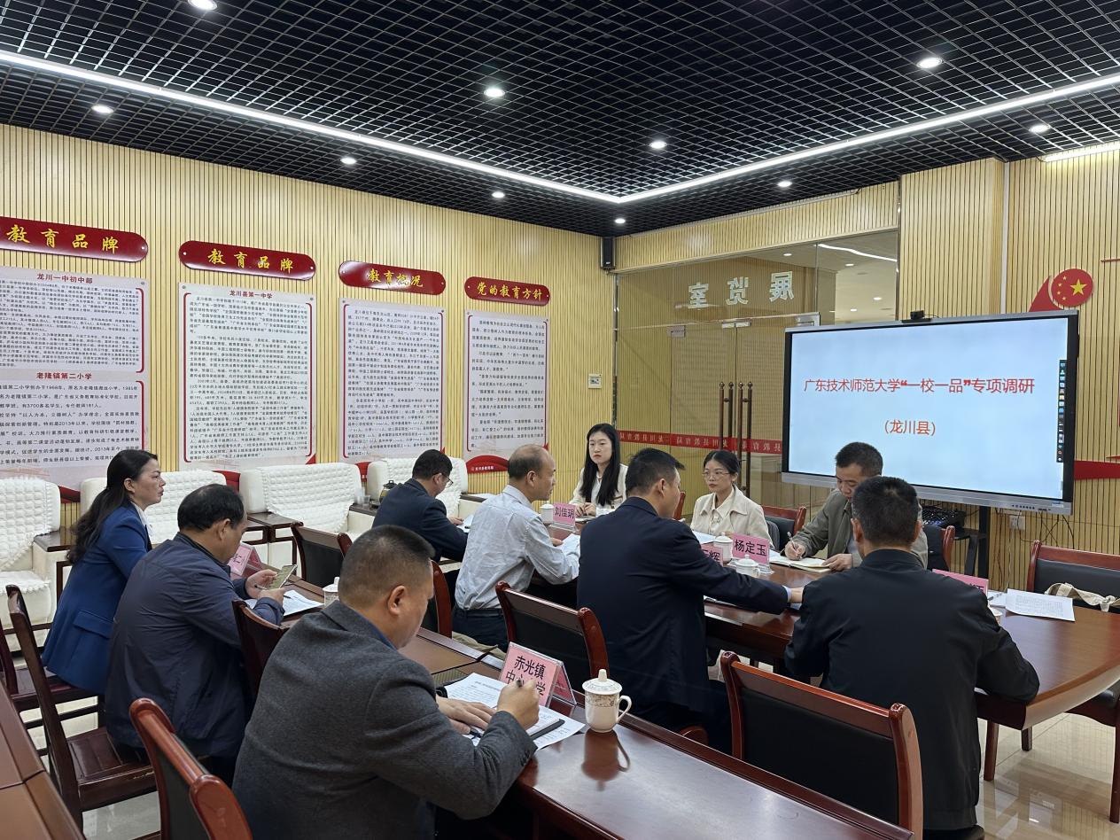 杨定玉团队在县教育局教育股廖荣平主任陪同下到龙川县老隆镇第二小学、龙川县田家炳中学、龙川一中、赤光镇中心小学等4所学校进行调研。在与各学校座谈中,杨定玉主动向各校负责人介绍广师大“一校一品”建设目前进展以及下一步工作部署,并与学校领导交流学校的具体情况,熟悉各学校发展现状,了解其品牌建设的基本情况。