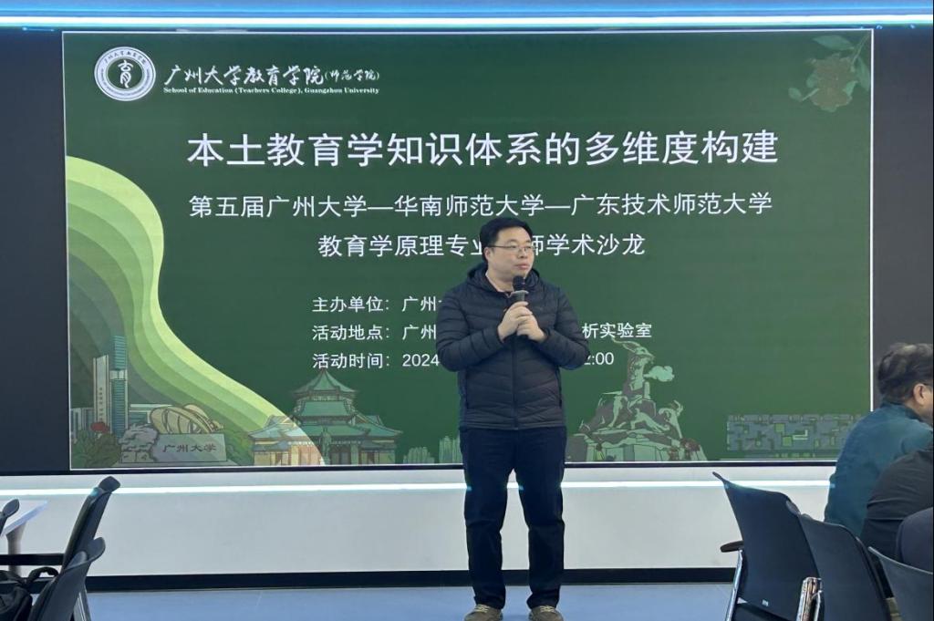 12月22日,第五届广州大学—华南师范大学—广东技术师范大学教育学原理专业教师学术沙龙在广州大学(大学城校区)举行。本次学术沙龙以“本土教育学知识体系的多维度构建”为主题。我校熊华军教授、邵成智博士、贺玲博士与会,并进行了主题发言和讨论交流。