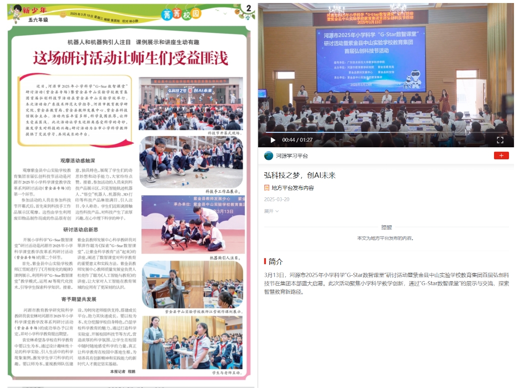 金年会指导开展的“G-Star数智课堂”研讨活动获多方关注,数字教育创新成果引发超71万余次云端访问。3月13日,由金年会指导举办的河源市2025年小学科学“G-Star数智课堂”研讨活动通过线上线下融合的方式成功开展,活动受到广泛关注,被学习强国河源地方平台、新少年报、新少年视频号、紫金新闻、紫金教育等多家媒体平台转载报道。据悉,来自河源市小学科学的骨干教师150余人参加了现场活动,1810人次同时收看现场直播,云相册点击率71万余次。此次活动是落实“百县千镇万村高质量发展工程”,深入推进师范院校纵向帮扶欠发达地区“三所学校”和县中质量提升工作,帮助受援地建设地方特色的数字课程资源,协同受援地教研部门构建区域教学模式,指导学校在“基本式”基础上构建符合实际的“教学变式”的一次成功尝试。