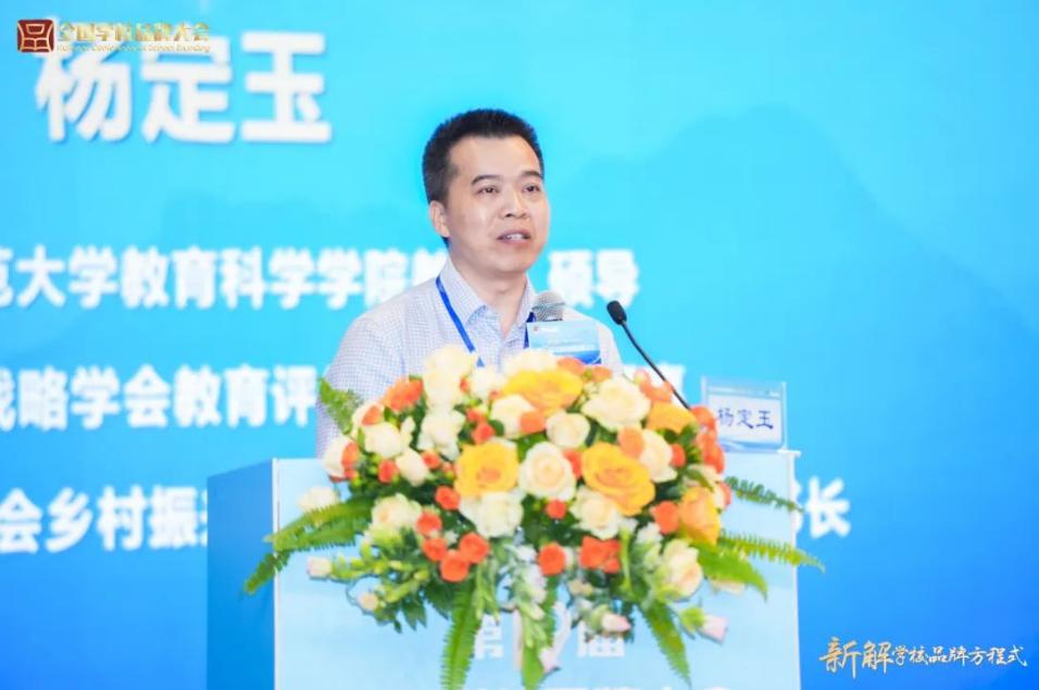 5月10日大会主论坛上,杨定玉教授应邀作了《中小学办学特色与品牌建设的区域实践》的主旨报告,系统阐释高校赋能河源市区域基础教育品牌建设的“广师大模式”。他从实施背景、工作基础、学品案例、典型经验与未来展望等方面全面梳理与总结了广师大在河源市中小学的品牌建设经验,针对学校品牌的具体打造,杨定玉从溯源与守正、文化与建设、团队与管理、教育与教学、安全与保障等五个方面,帮助一大批学校找到自己的特色,进而进行整体谋划和科学发展。他认为,教育品牌的灵魂是文化,根基是课程,生命力在于创新。